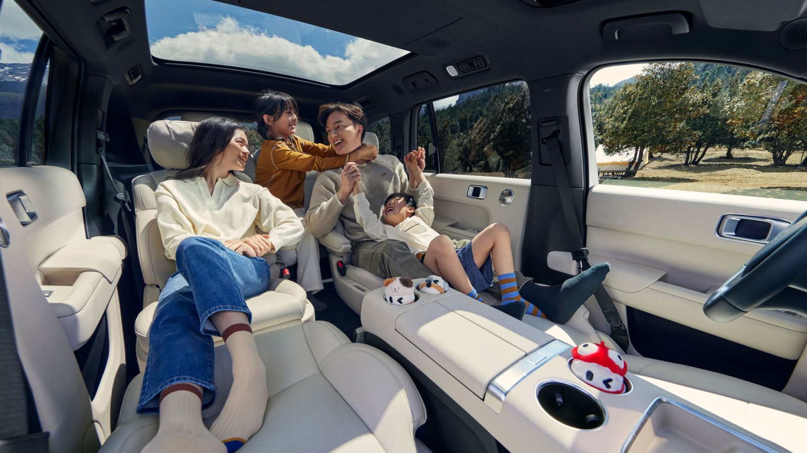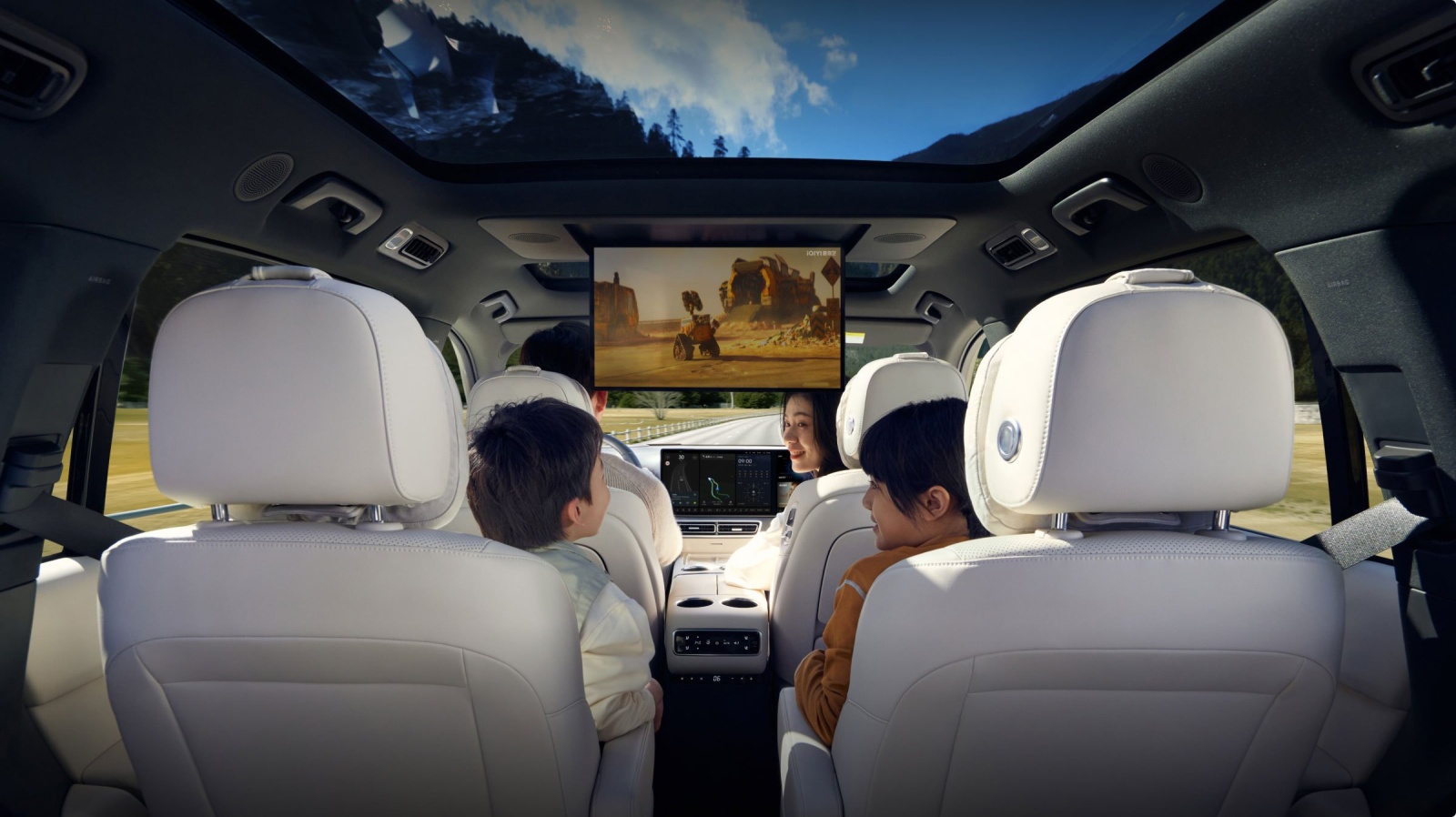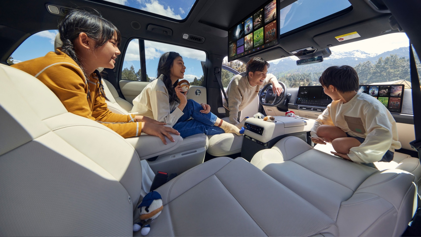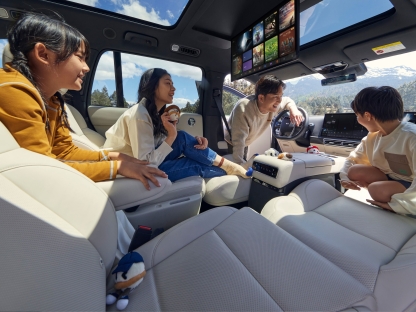 Energie: Două zone de încărcare wireless (50W) cu sistem de răcire; priză de 220V (2.2 kW) și funcție de alimentare externă (V2L) de 3.5 kW.