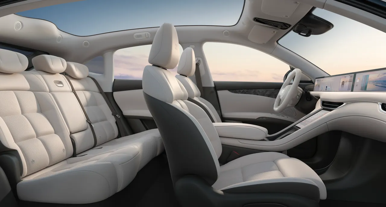 Один из аспектов, над которым дизайнеры действительно отлично поработали, - коэффициент аэродинамического сопротивления 0,237, что является практически лучшим показателем в классе. И это благодаря аэродинамической ленте, которая позволяет быстро обгонять фронтальный ветер. Колесная база в 2950 мм значительно превосходит аналоги. Благодаря широкой задней оси 1707 мм создается самое большое в классе горизонтальное пространство салона.