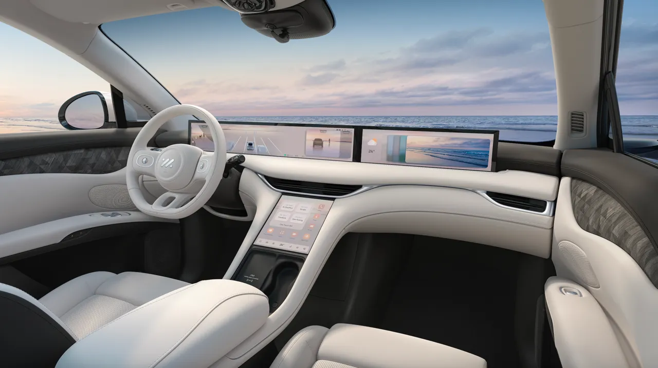 Если говорить о цветовой гамме, то IM Motors представили 7 цветов экстерьера: розовый, голубой, желтый, бежевый, черный, белый и серый, и все эти цвета с низким уровнем насыщенности. Все цвета были вдохновлены произведениями знаменитых архитекторов и художников Европы: Фердинанда дю Лойен Пюигодо, Моне, Рафаэля и Вермеера.