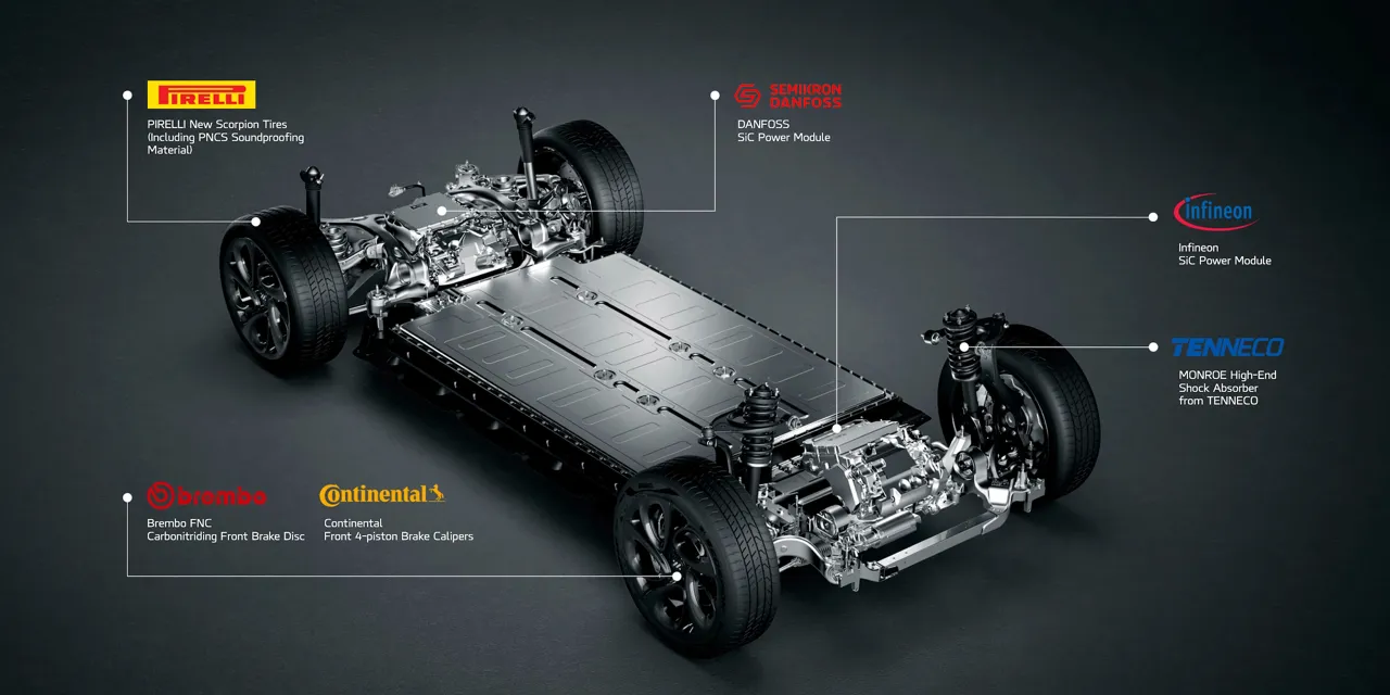 Если быть точным, то в шасси установлены электроусилитель руля BOSCH, тормозные суппорты CONTINENTAL и тормозная система One-box, шины PIRELLI, а в целом шасси настроено компанией WAE в Великобритании.