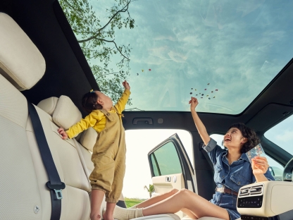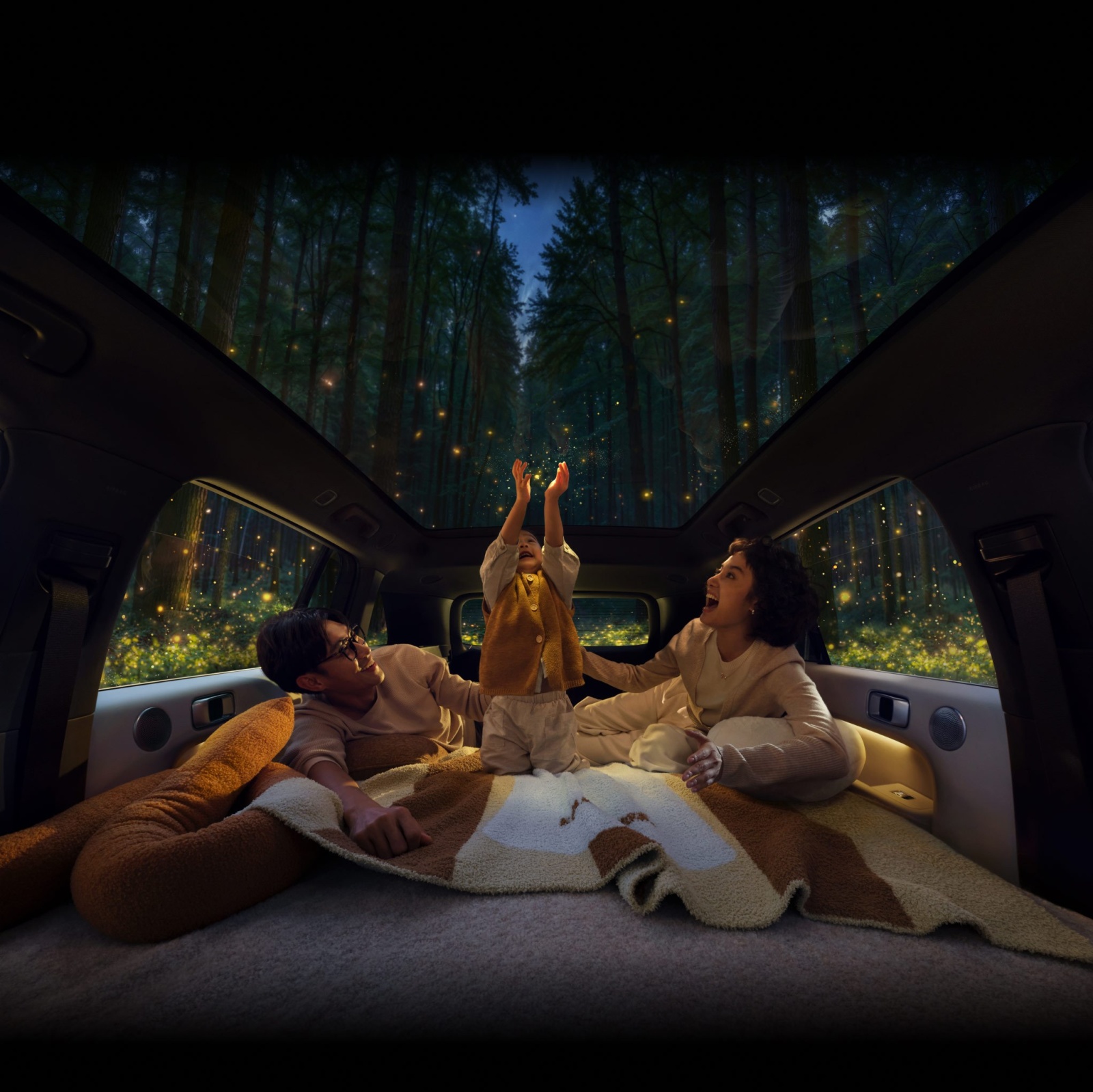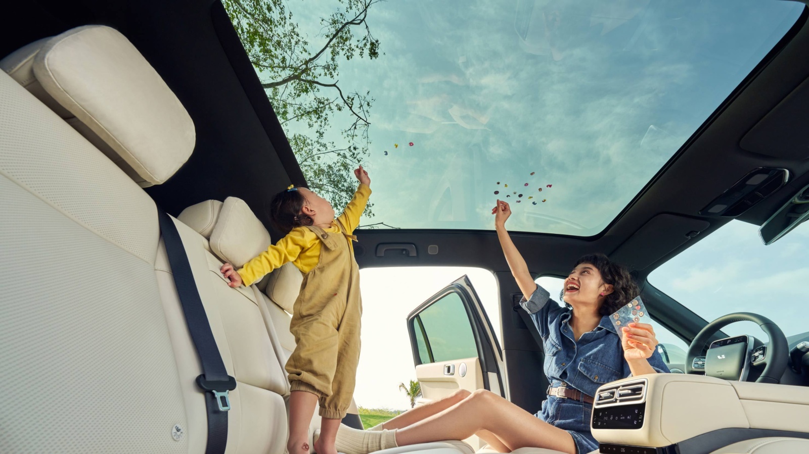 Двойное остекление (панорамная крыша, лобовое стекло и окна первого/второго рядов) для лучшей шумоизоляции.